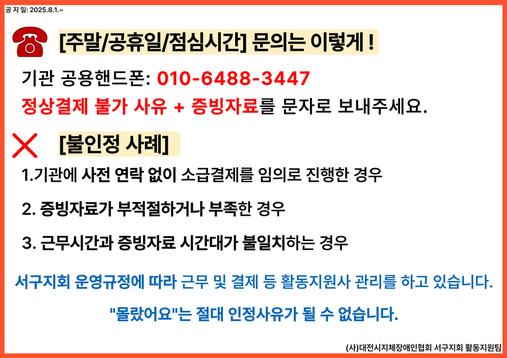 ★★ 불시에 영상통화 확인, 방문 확인, 타임스탬프 등 ★★ 진행하고 있으니 이용자 및 활동지원사 여러분의 협조를 부탁드립니다.