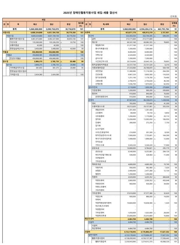 1. 2025년 장애인활동지원사업 세입·세출 결산서