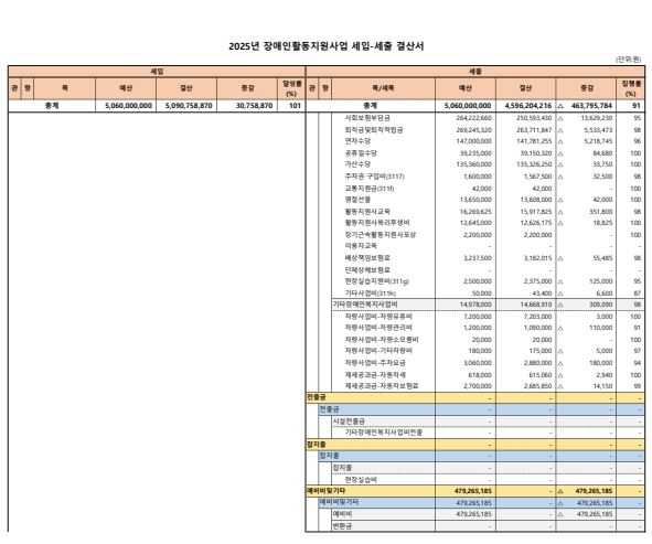 2025년 장애인활동지원사업 세입·세출 결산 보고 상세보기